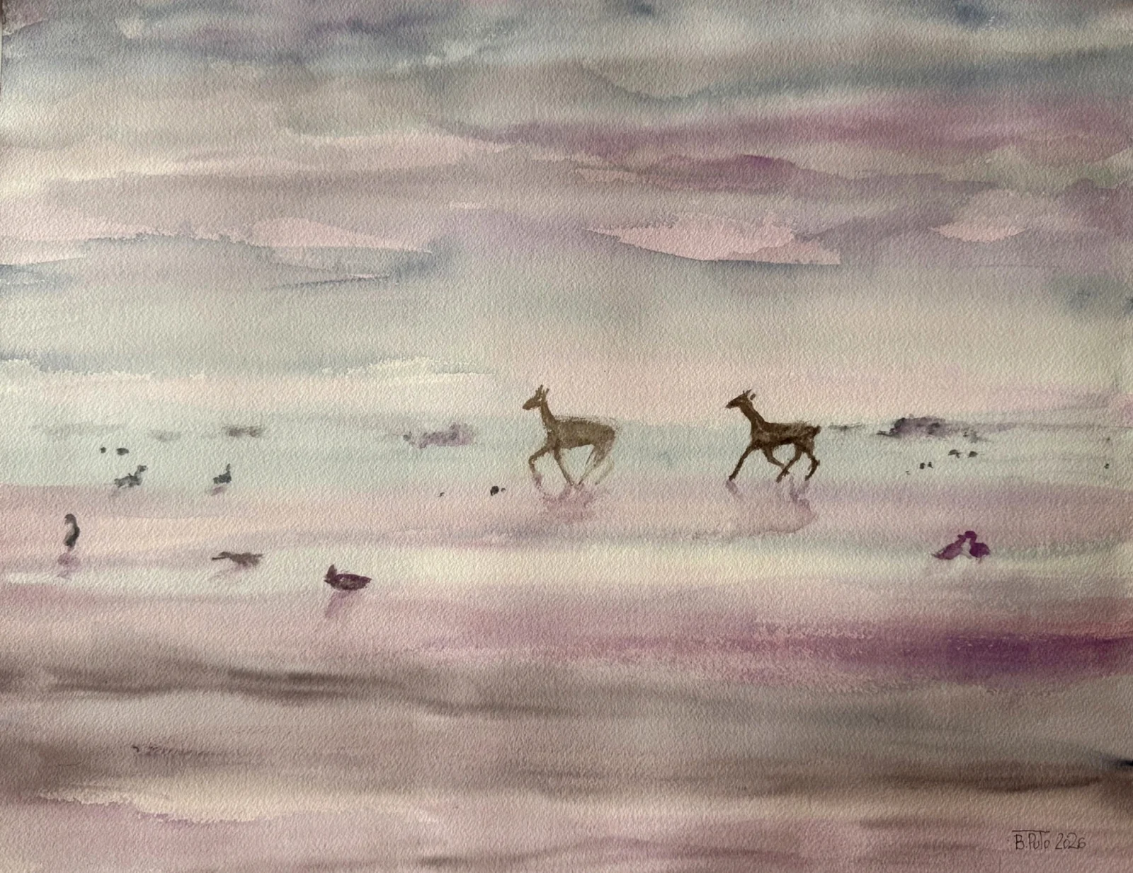 „Cisza przejścia” to wystawowy cykl pięciu akwareli autorstwa Barbary Puto, poświęcony momentom zawieszenia pomiędzy nocą a dniem, bezruchem a gotowością, skupieniem a otwarciem przestrzeni.To malarstwo o stanie – nie o zdarzeniu – w którym światło pojawia się powoli, bez deklaracji i bez gestu.