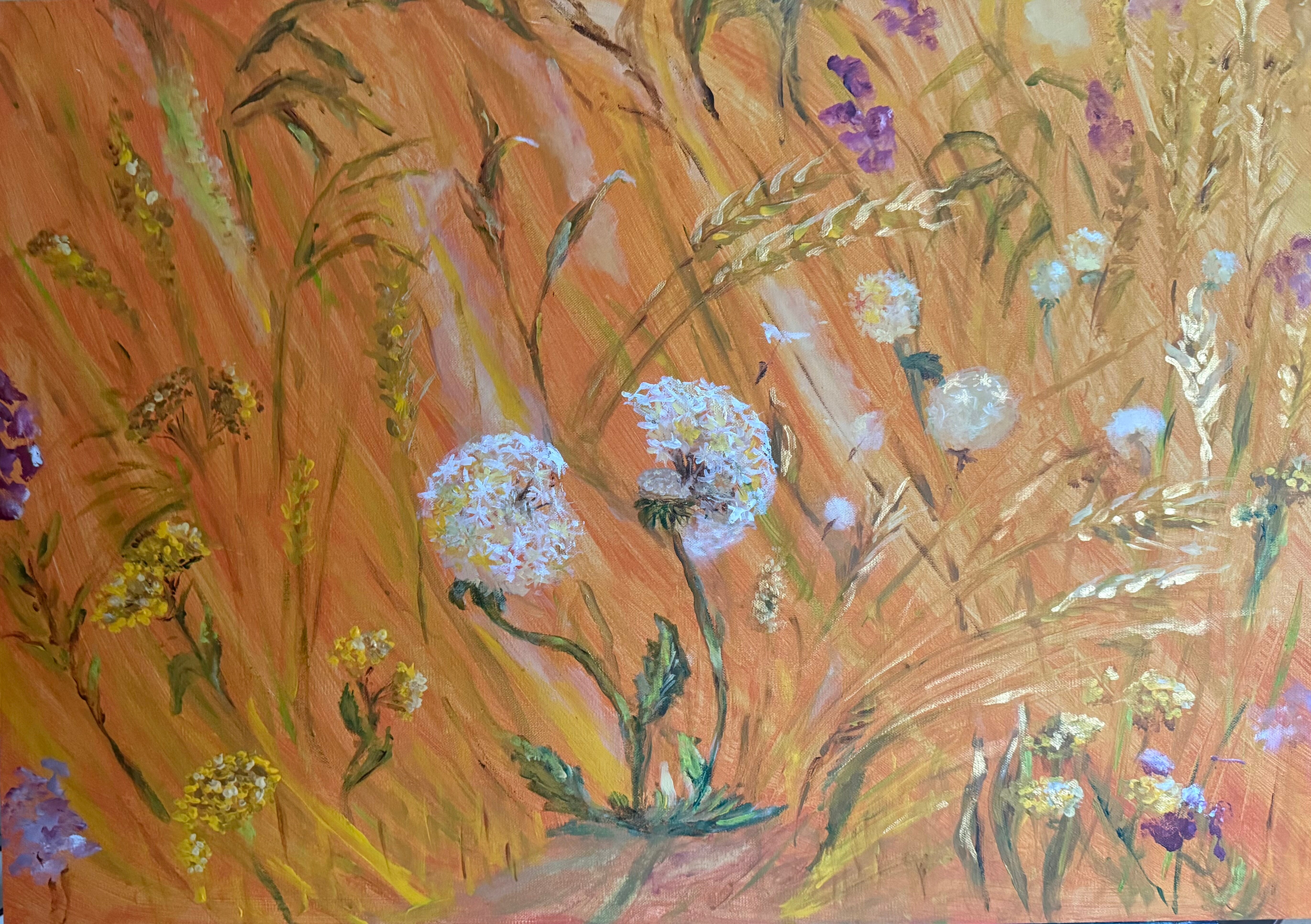 Dmuchawce w momencie przejścia — jeszcze obecne, już wystawione na rozproszenie. Subtelna praca o akceptacji zmiany i o pięknie chwili, która nie chce trwać wiecznie.