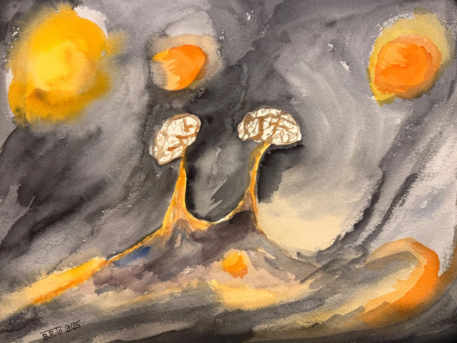 W tych obrazach natura staje się opowieścią o ruchu, komunikacji i wzajemnych zależnościach. Każda praca ukazuje inne oblicze śluzowca – jego formę, barwę, rytm życia. W akwareli rozpuszczają się granice między nauką a sztuką – mikroorganizmy stają się metaforą ludzkich relacji, intuicyjnych decyzji, wspólnego kierunku.