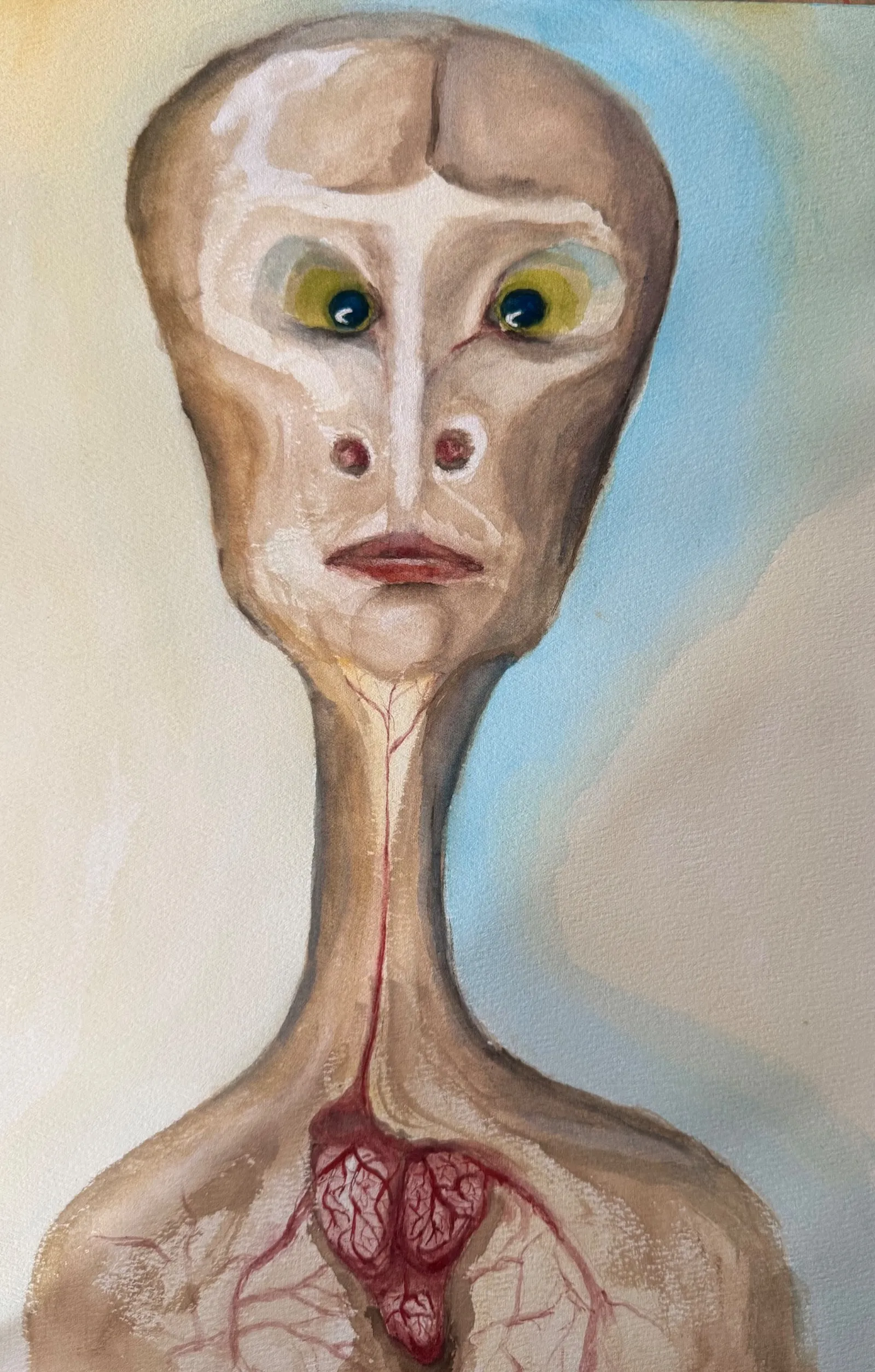 „Istoty” powstały z potrzeby pokazania człowieka w sposób, który wykracza poza portret. Nie interesuje mnie podobieństwo, lecz prawda. Nie forma, lecz energia. Nie anatomia, lecz przestrzeń, z której rodzą się uczucia. Dlatego w centrum tych obrazów zawsze znajduje się serce — symbol wewnętrznej obecności, źródło światła, które niekiedy pulsuje cicho, a niekiedy rozświetla całą postać.